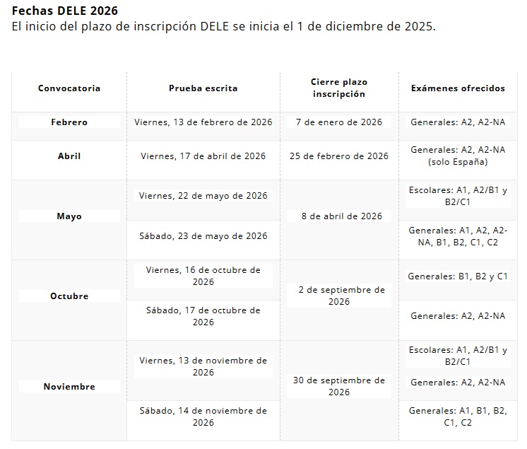 - Caso especial. Para los candidatos que se examinen del DELE A2 en España: